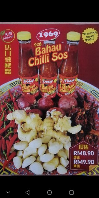 1969 Bahau Chili Sauce 340g quantity. 1969马口辣椒酱已有50年历史味道非常香辣可口可以当配料也可以当酱料 特制家传配方 绝无添加剂 纯天然食材 我们也有提供邮寄服务哟. Price list of Malaysia Sos cili products from sellers on Lelongmy.